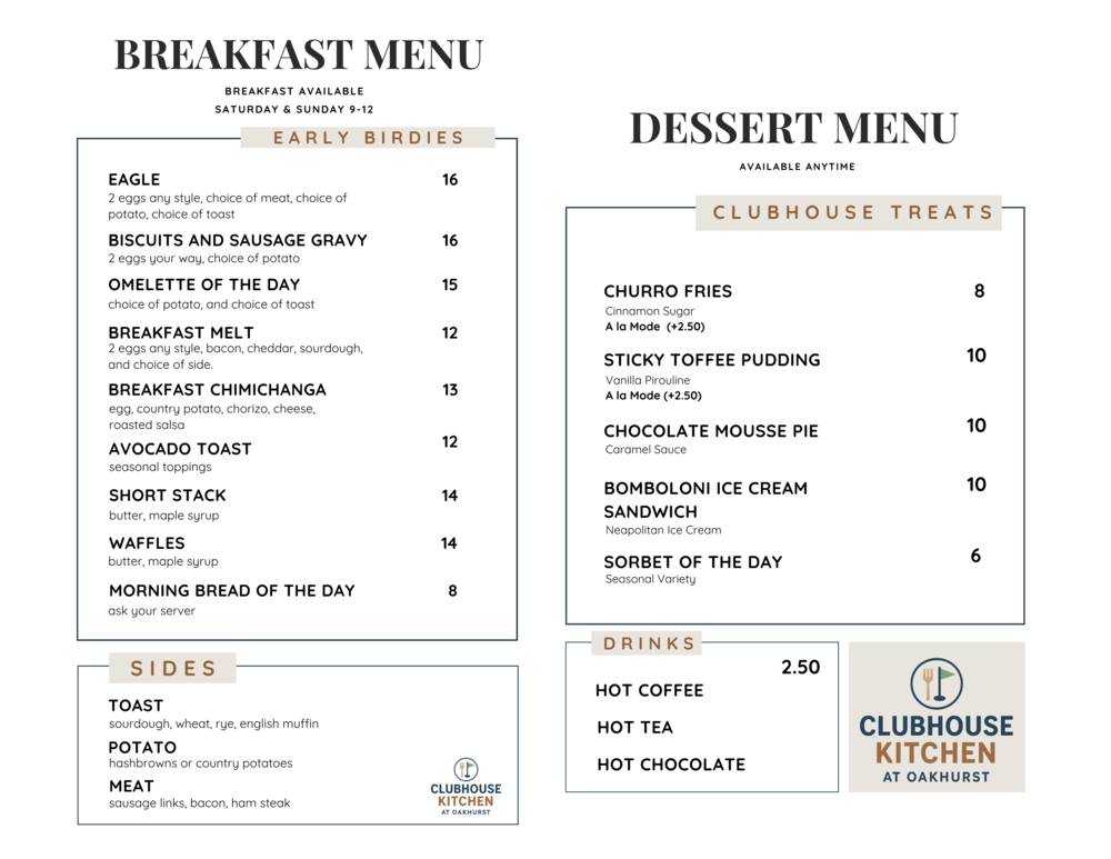Clubhouse Kitchen Hours of Operation